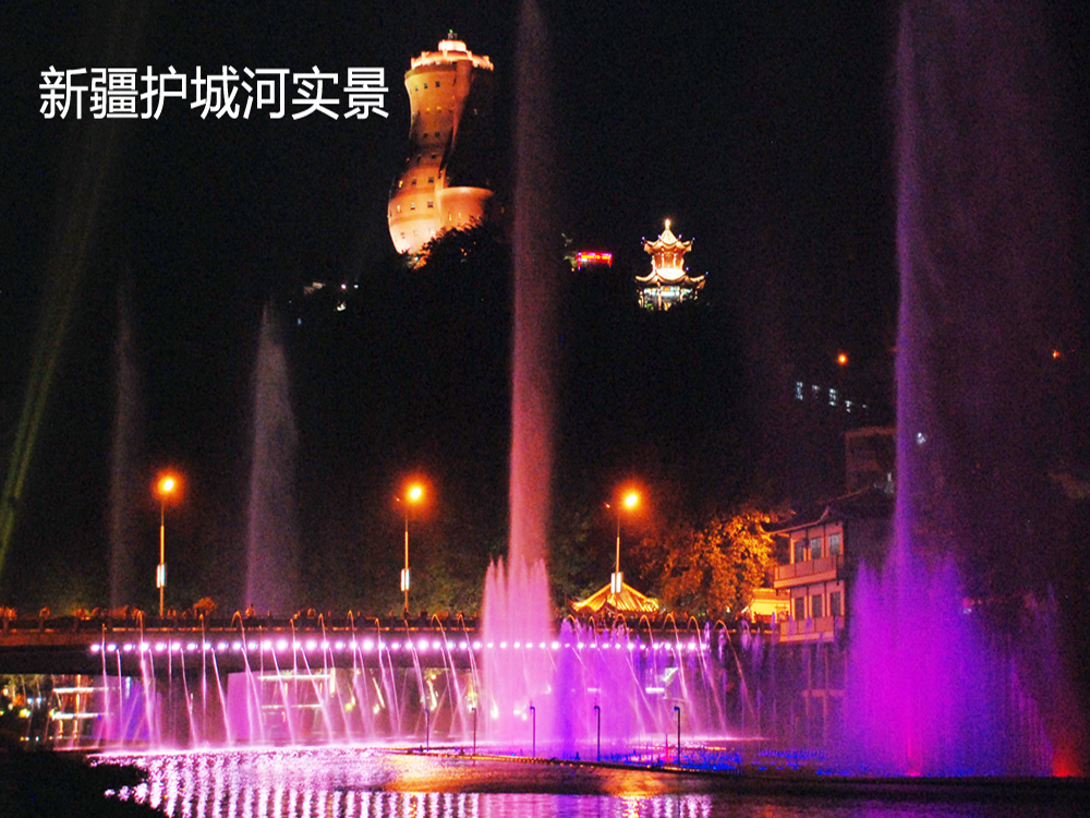 新疆護(hù)城河音樂噴泉通過程序控制系統(tǒng)和音樂控制系統(tǒng),對音樂進(jìn)行編程,使噴泉造型與音樂旋律、燈光同步結(jié)合而產(chǎn)生千變?nèi)f化的水景,高端大氣..